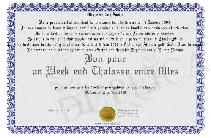 Envoyez par email votre Bon pour un Week end Thalasso entre filles personalisé