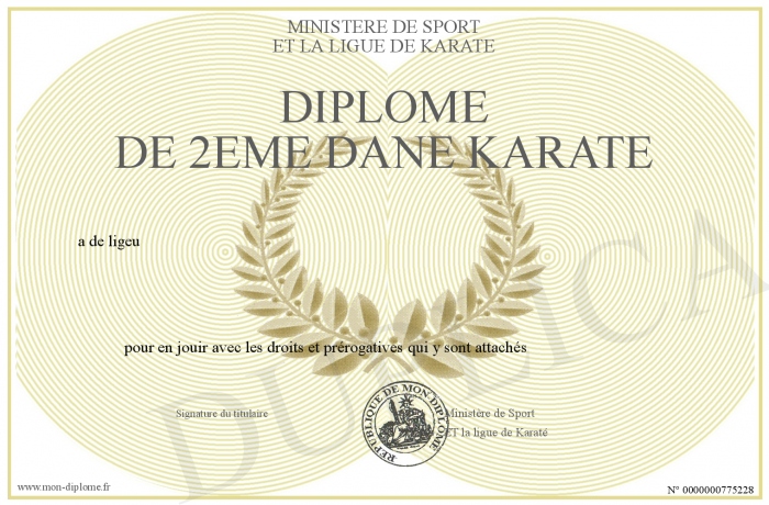Envoyez par email votre Diplôme de 2eme Dane karaté personalisé