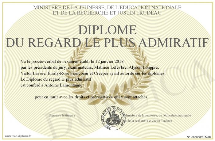 Envoyez par email votre Diplôme du regard le plus admiratif personalisé