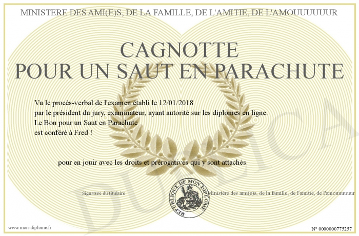 Envoyez par email votre Cagnotte pour un Saut en Parachute personalisé