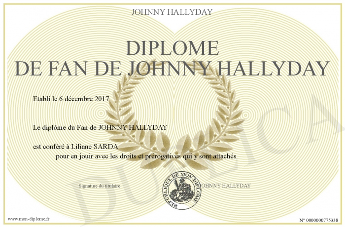 Envoyez par email votre Diplome de Fan de Johnny Hallyday personalisé