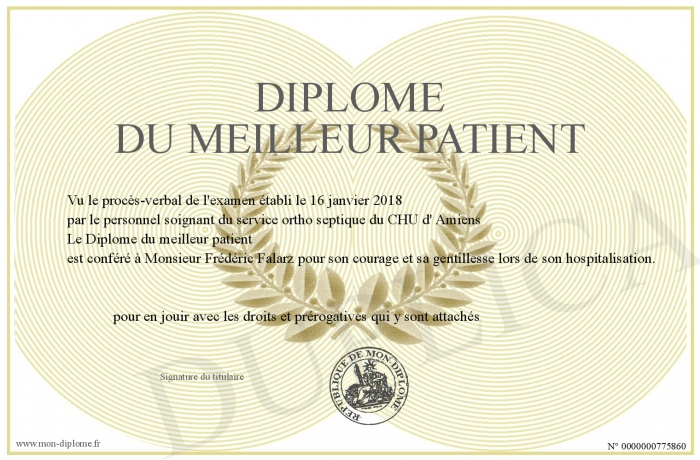 Envoyez par email votre Diplôme du meilleur patient personalisé