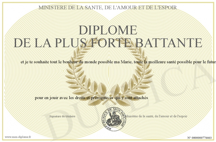 Envoyez par email votre Diplôme de la plus forte battante personalisé