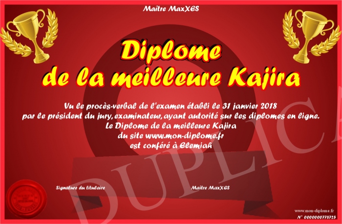 Envoyez par email votre Diplôme de la meilleure Kajira personalisé