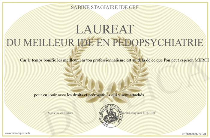 Envoyez par email votre lauréat du meilleur IDE en Pédopsychiatrie personalisé