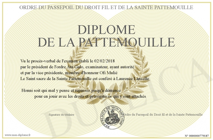 Envoyez par email votre Diplôme de la pattemouille personalisé