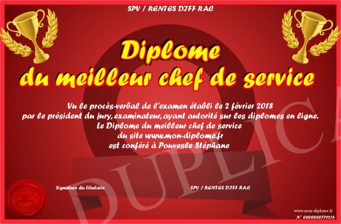 Envoyez par email votre Diplôme du meilleur chef de service personalisé