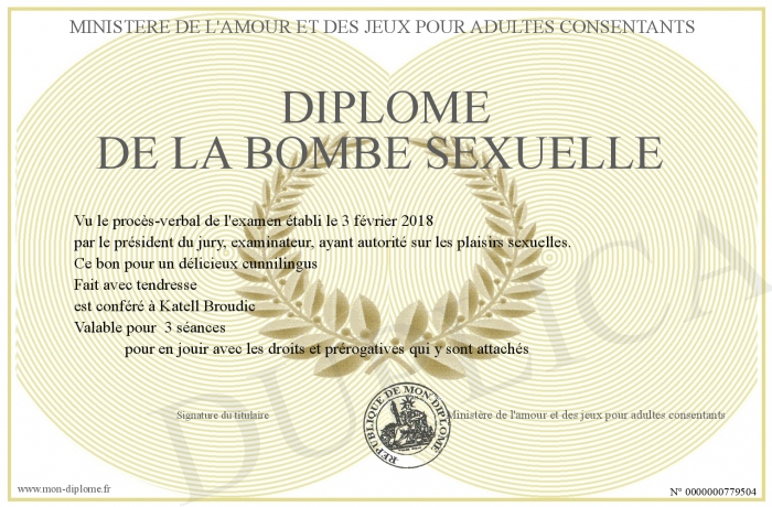 Envoyez par email votre Diplôme de la bombe sexuelle personalisé