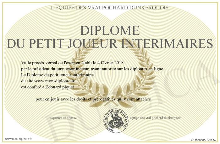 Envoyez par email votre Diplôme du petit joueur intérimaires personalisé