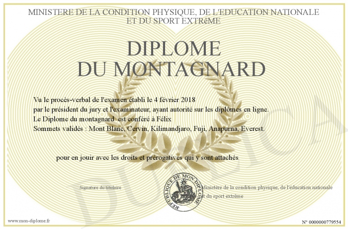 Envoyez par email votre Diplôme du montagnard personalisé