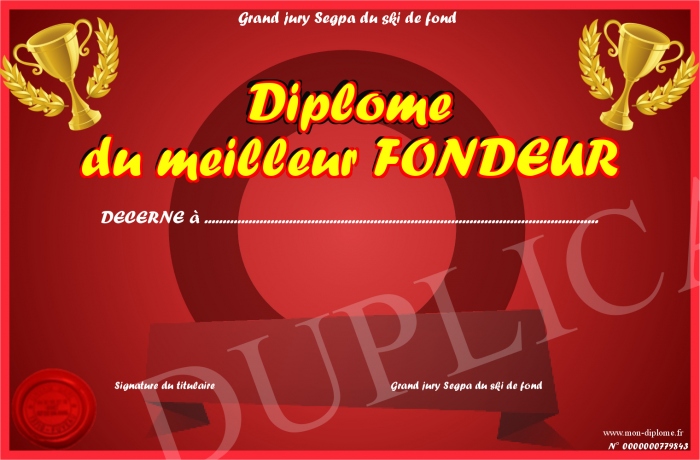 Envoyez par email votre Diplôme du meilleur FONDEUR personalisé