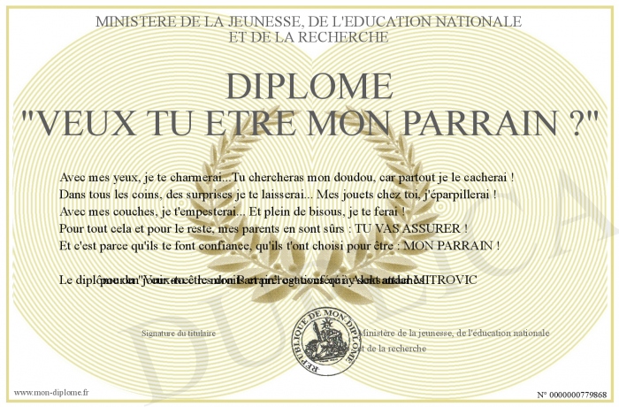 Envoyez par email votre Diplôme -Veux tu etre mon Parrain ?- personalisé