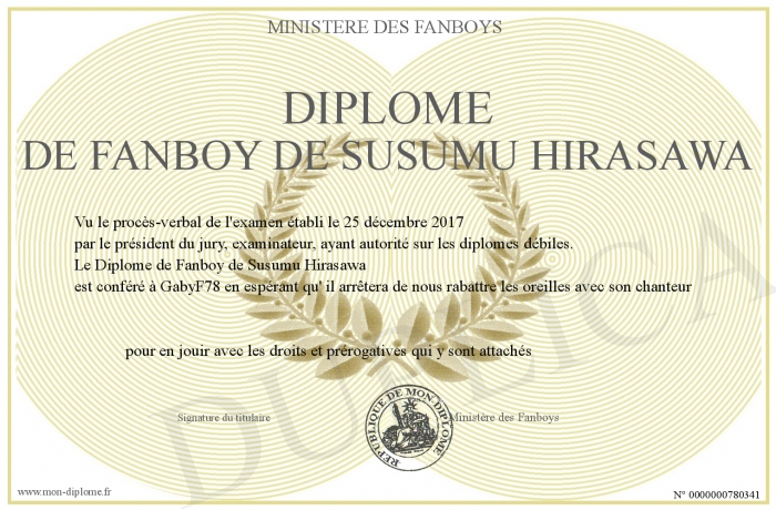 Envoyez par email votre Diplôme de Fanboy de Susumu Hirasawa personalisé