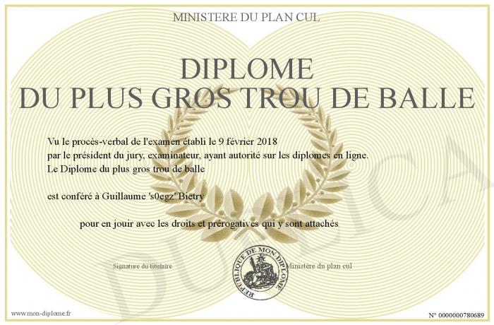 Envoyez par email votre Diplôme du plus gros trou de balle personalisé