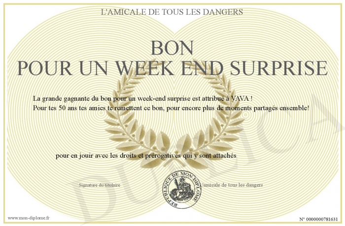Envoyez par email votre Bon pour un week end surprise personalisé