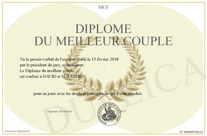 Envoyez par email votre Diplôme du meilleur couple personalisé