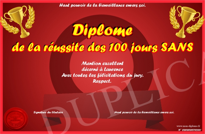Envoyez par email votre Diplôme de la réussite des 100 jours SANS personalisé