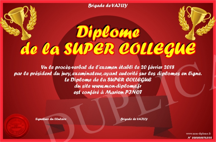 Envoyez par email votre Diplôme de la SUPER COLLEGUE personalisé