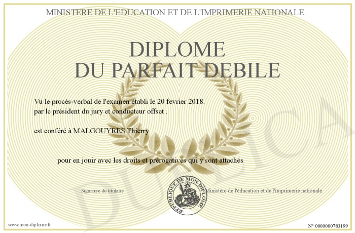 Envoyez par email votre Diplôme du parfait débile personalisé