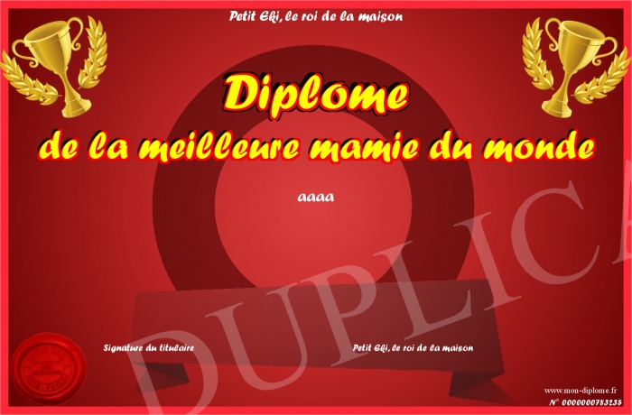 Envoyez par email votre Diplôme de la meilleure mamie du monde personalisé