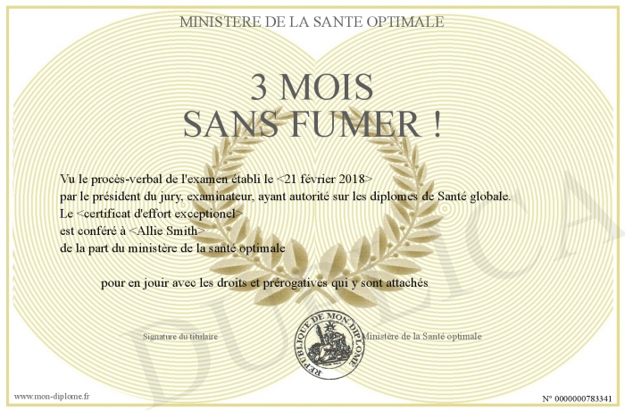 Envoyez par email votre 3 mois sans fumer ! personalisé