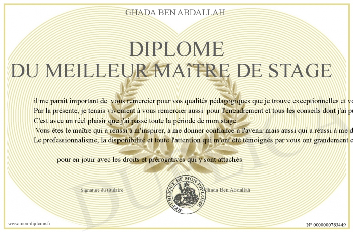 Envoyez par email votre Diplôme du meilleur maître de stage personalisé