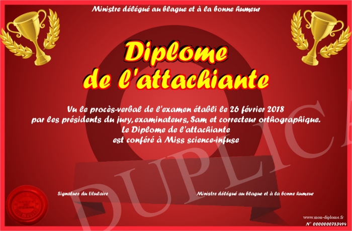 Envoyez par email votre Diplôme de l'attachiante personalisé