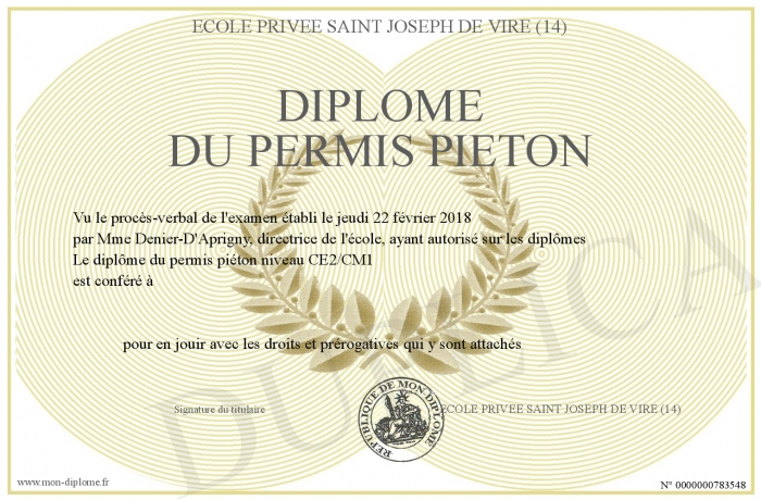 Envoyez par email votre DIPLOME DU PERMIS PIETON personalisé