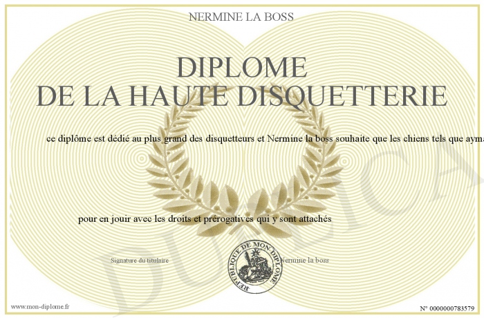 Envoyez par email votre Diplôme de la haute disquetterie personalisé