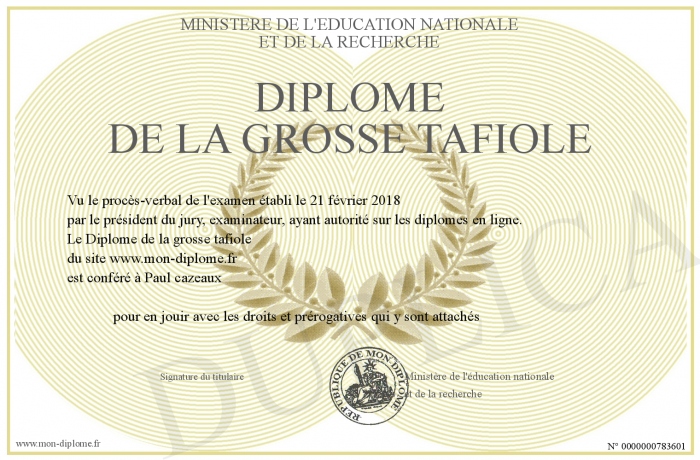 Envoyez par email votre Diplôme de la grosse tafiole personalisé