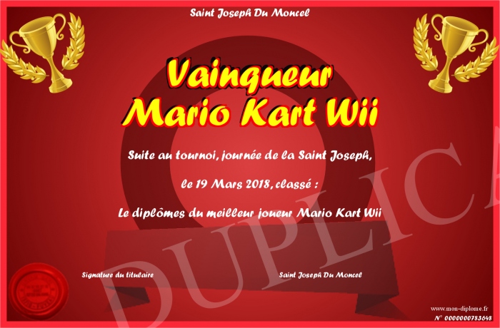 Envoyez par email votre Vainqueur Mario Kart Wii personalisé