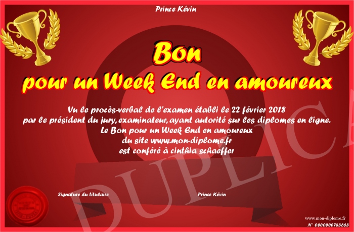 Envoyez par email votre Bon pour un Week End en amoureux personalisé
