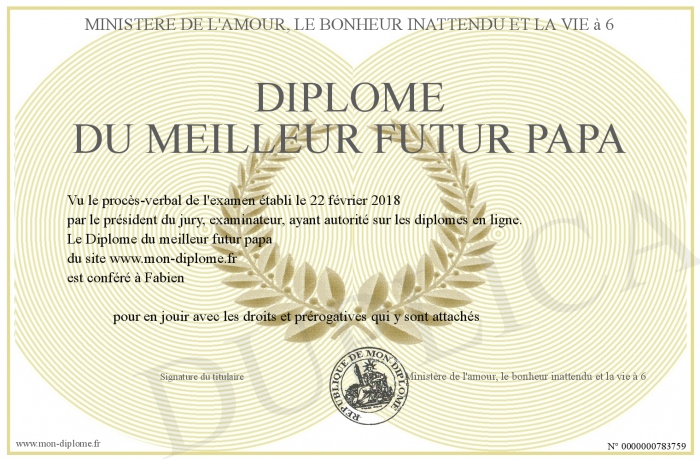 Envoyez par email votre Diplôme du meilleur futur papa personalisé