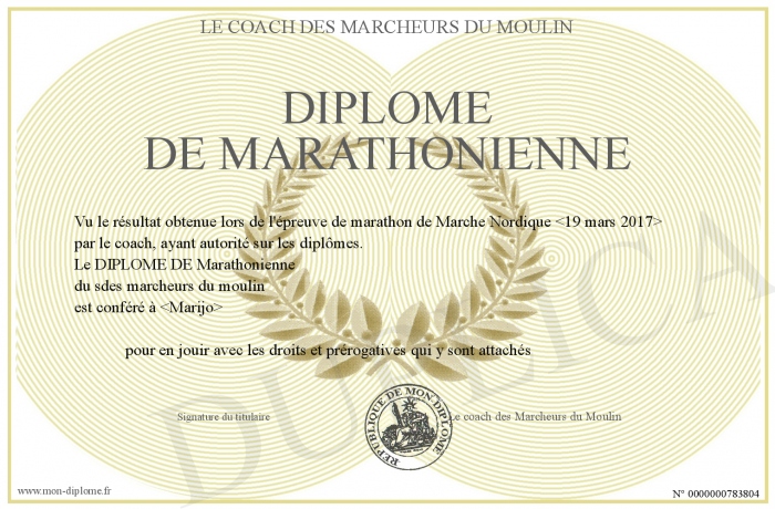 Envoyez par email votre DIPLOME DE Marathonienne personalisé