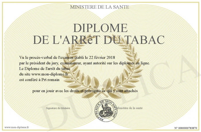 Envoyez par email votre Diplôme de l'arrêt du tabac personalisé