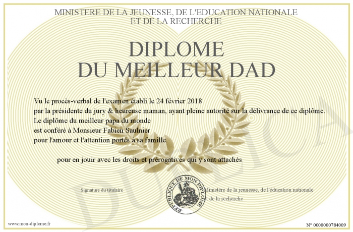 Envoyez par email votre Diplôme du meilleur dad personalisé