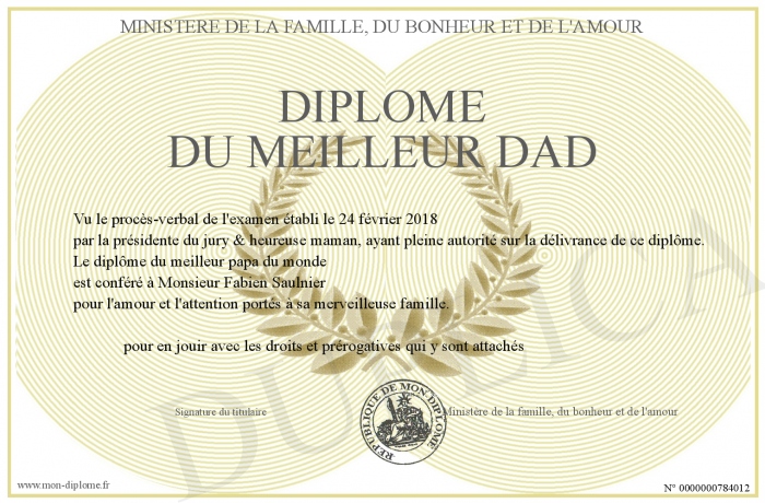 Envoyez par email votre Diplôme du meilleur dad personalisé