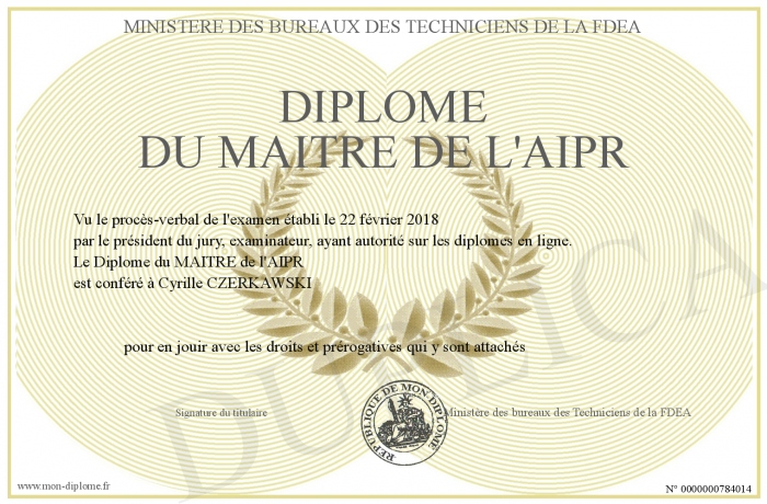 Envoyez par email votre Diplôme du MAITRE de l'AIPR personalisé