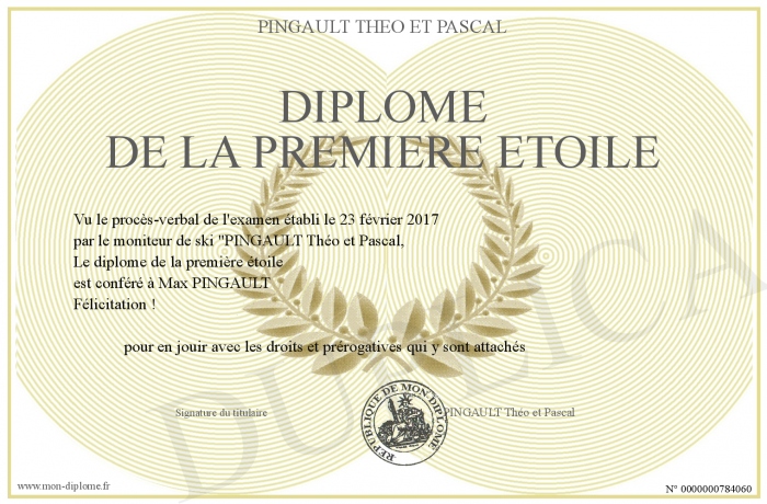 Envoyez par email votre Diplôme de la première étoile personalisé