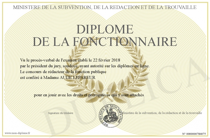 Envoyez par email votre Diplôme de la Fonctionnaire personalisé
