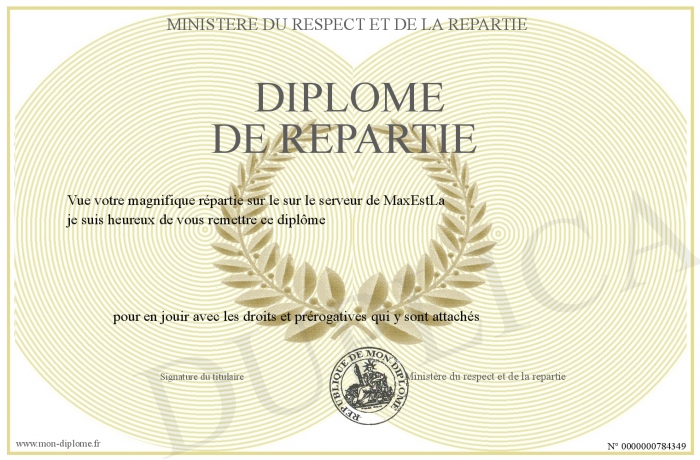 Envoyez par email votre Diplôme de répartie personalisé