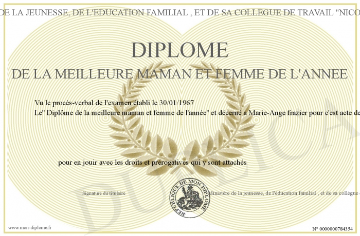 Envoyez par email votre Diplôme de la meilleure maman et femme de l'année personalisé