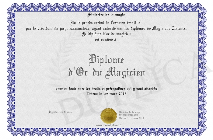 Envoyez par email votre Diplome d'Or du Magicien personalisé