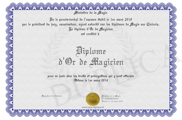 Envoyez par email votre Diplome d'Or de Magicien personalisé