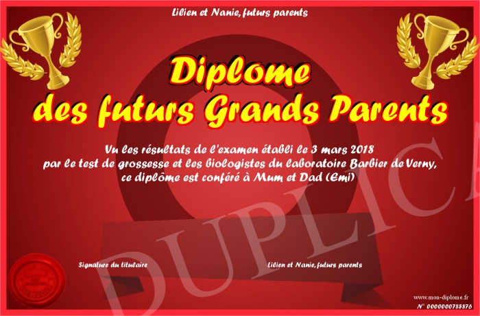 Envoyez par email votre Diplôme des futurs Grands Parents personalisé