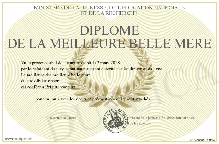 Envoyez par email votre Diplôme de la meilleure belle mere personalisé