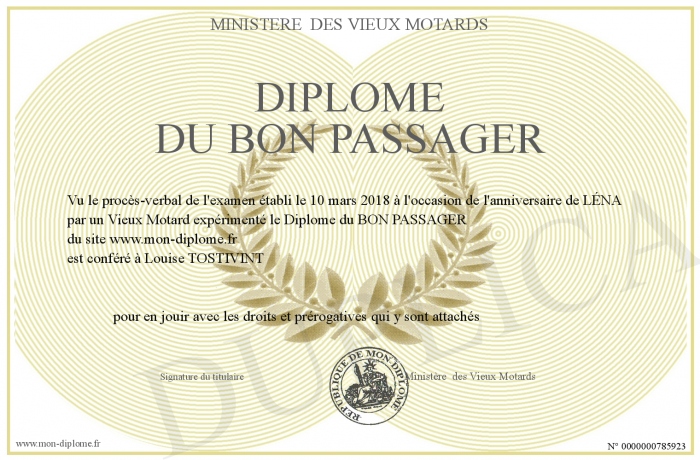 Envoyez par email votre Diplôme du BON PASSAGER personalisé