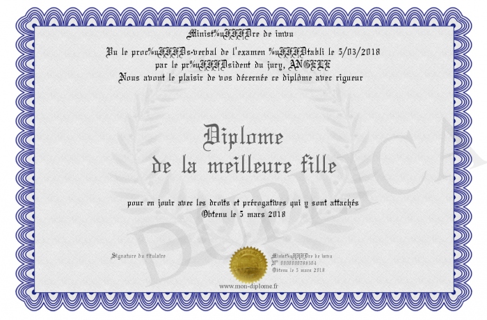 Envoyez par email votre Diplome de la meilleure fille personalisé