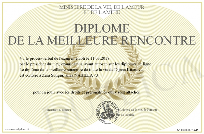 Envoyez par email votre Diplôme de la meilleure rencontre personalisé