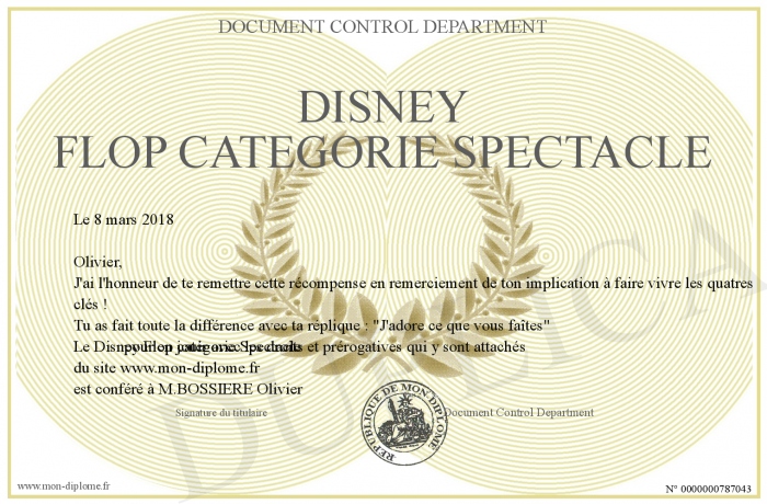 Envoyez par email votre Disney Flop catégorie Spectacle personalisé
